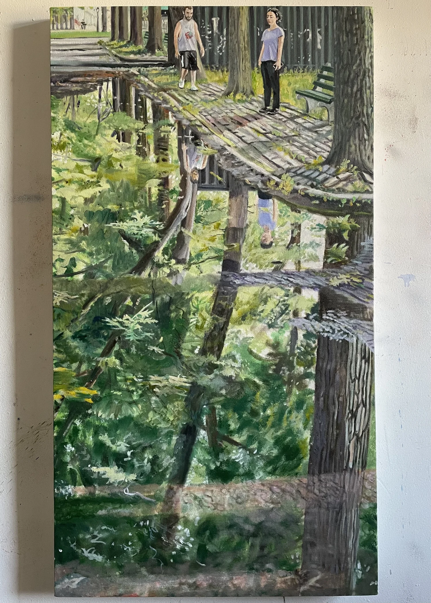 In the Park, The Encounter II, Oil on Canvas, 40 x 22, 2025